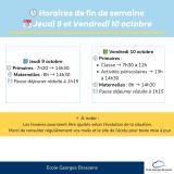 Nous vous informons que les horaires de l’école seront légèrement modifiés pour la fin de cette semaine :